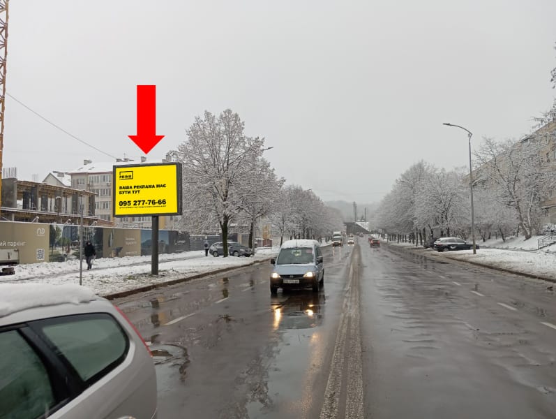 Рекламна площина 2.3×3.14 м в Львові — беклайт. Розмір площини: 2.3×3.14 м, сторона B. Підходить для іміджевої та навігаційної реклами. Код: Lv1936.