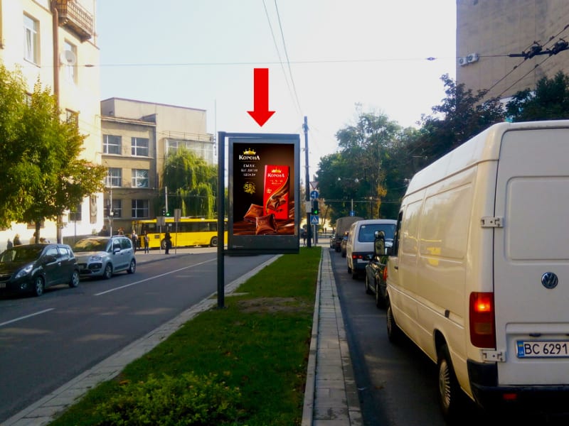 Пропонуємо в оренду сітілайт 1.8×1.2 м в м. Львів. Площина орієнтована в сторону пл. Святого Юра. Розмір площини: 1.8×1.2 м, сторона A. Рекламне розміщення з високою видимістю та охопленням. Код: Lv1815.