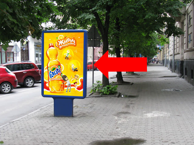 Зовнішня реклама в Львові: сітілайт 1.8×1.2 м. Розмір площини: 1.8×1.2 м, сторона B. Зручне розташування для максимального охоплення аудиторії. Код: Lv1055.