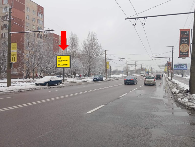 Рекламна площина 2.3×3.14 м в Львові — беклайт. Формат 2.3×3.14 м (сторона B). Зручне розташування для максимального охоплення аудиторії. Код: Lv1938.