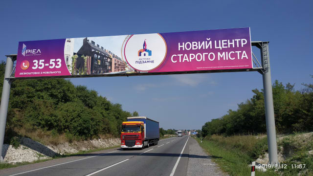Зовнішня реклама в Львові: рекламний міст 18×3 м. Площина орієнтована в сторону Києва. Сторона A, розмір 18×3 м. Ідеальне місце для розміщення реклами вашого бренду. Код: Akv112.