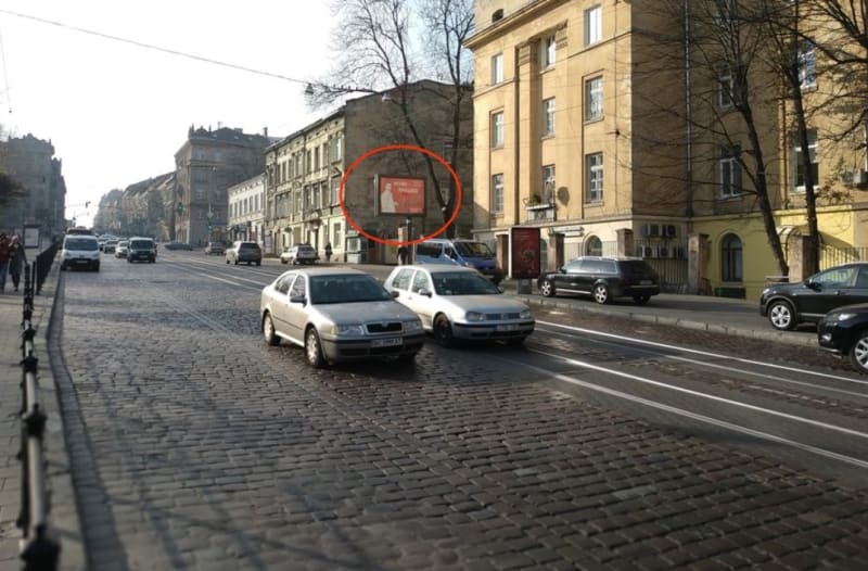 Оренда рекламна конструкціяу 2.3×3.14 м в м. Львів. Формат 2.3×3.14 м (сторона A). Підходить для іміджевої та навігаційної реклами. Код: Lv171.