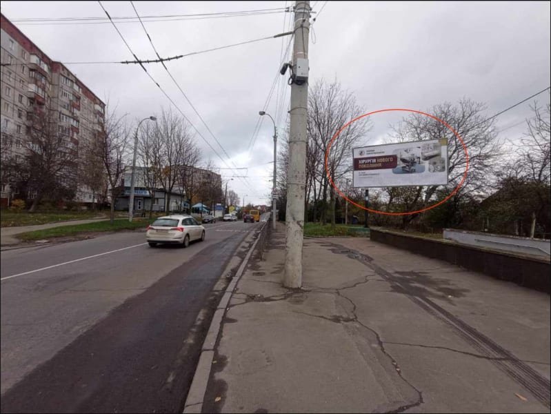 Рекламна конструкція 3×6 м для розміщення зовнішньої реклами в Рівному. Розмір площини: 3×6 м, сторона A. Стратегічна локація для ефективної зовнішньої реклами. Код: Rv003.