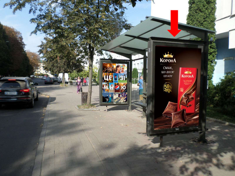 Сітілайт 1.8×1.2 м для розміщення зовнішньої реклами в Рівному. Поруч орієнтир: кінотеатру Україна. Сторона A, розмір 1.8×1.2 м. Підходить для іміджевої та навігаційної реклами. Код: Rvn1131.