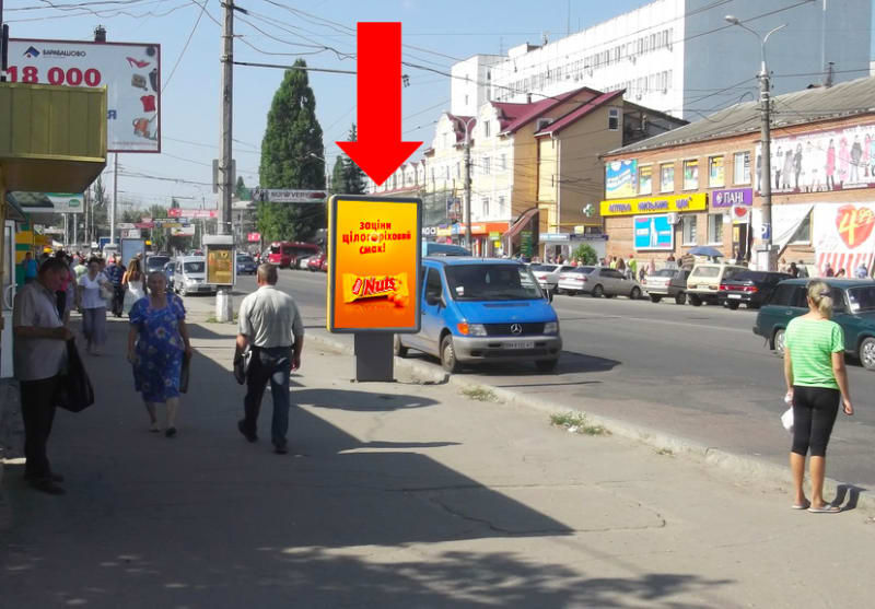 Рекламна площина 1.8×1.2 м в Сумах — сітілайт. Поруч орієнтир: магазину Мега Хіт. Формат 1.8×1.2 м (сторона B). Ідеальне місце для розміщення реклами вашого бренду. Код: Sum1213.