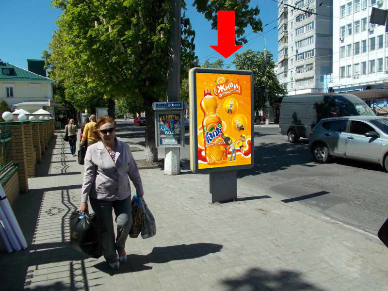 Зовнішня реклама в Сумах: сітілайт 1.8×1.2 м. Розташовано біля виставкового центру Іллінський. Формат 1.8×1.2 м (сторона B). Чудова видимість — оптимальний варіант для просування бренду. Код: Sum1025.