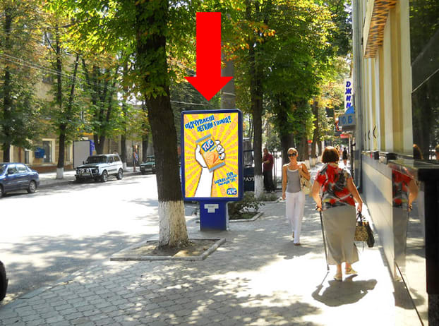 Пропонуємо в оренду сітілайт 1.8×1.2 м в м. Суми. Розташовано біля магазину Книголюб. Розмір площини: 1.8×1.2 м, сторона A. Зручне розташування для максимального охоплення аудиторії. Код: Sum1044.