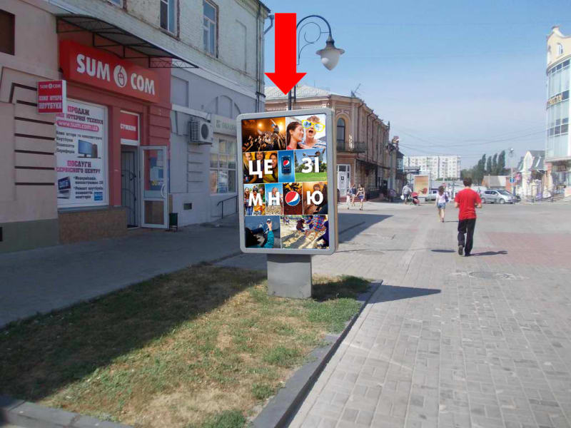 Пропонуємо в оренду сітілайт 1.8×1.2 м в м. Суми. Поруч орієнтир: Ощадбанку. Формат 1.8×1.2 м (сторона B). Рекламне розміщення з високою видимістю та охопленням. Код: Sum1139.