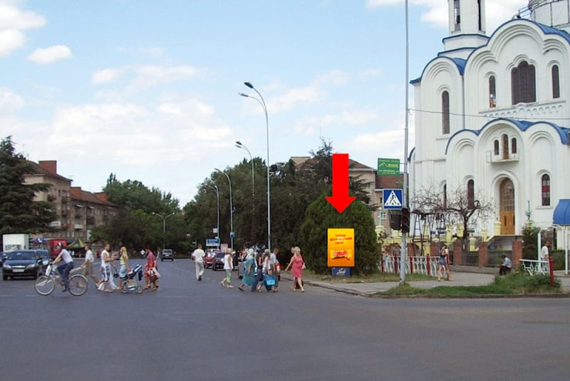 Біл борди Ужгород Свободи пр. / Минайська вул, Кирила і Мефодія пл., біля церкви Uzh1206 — Замовити | РА Тринога