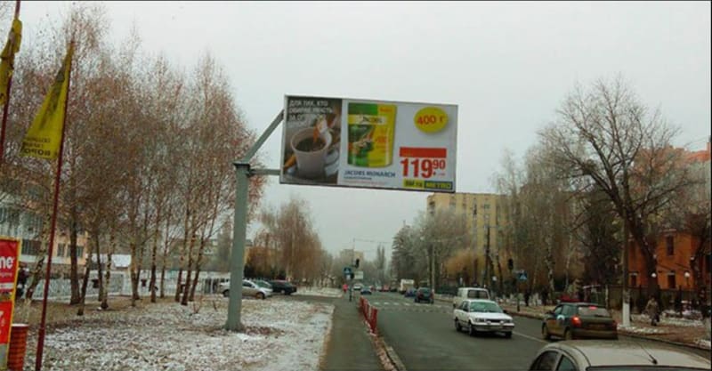 Зовнішня реклама в Вінниці: рекламна конструкція 3×6 м. Розмір площини: 3×6 м, сторона B. Зручне розташування для максимального охоплення аудиторії. Код: 112.