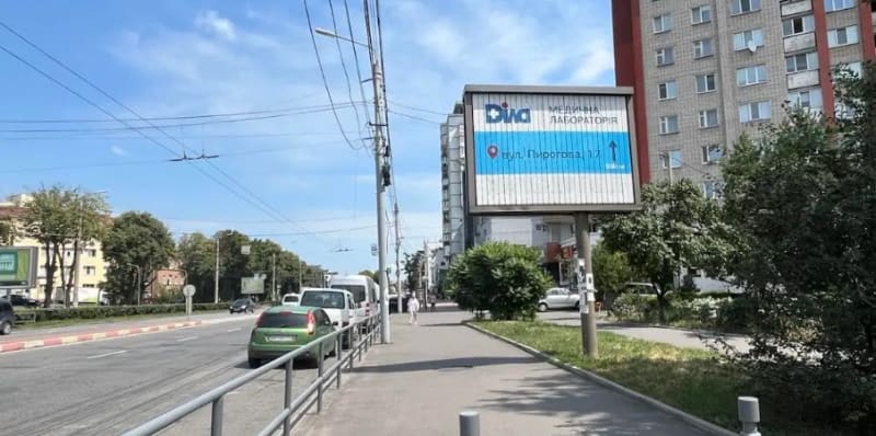 Зовнішня реклама в Вінниці: рекламна конструкція 3,05×2,2 м. Сторона A, розмір 3,05×2,2 м. Зручне розташування для максимального охоплення аудиторії. Код: 063А.