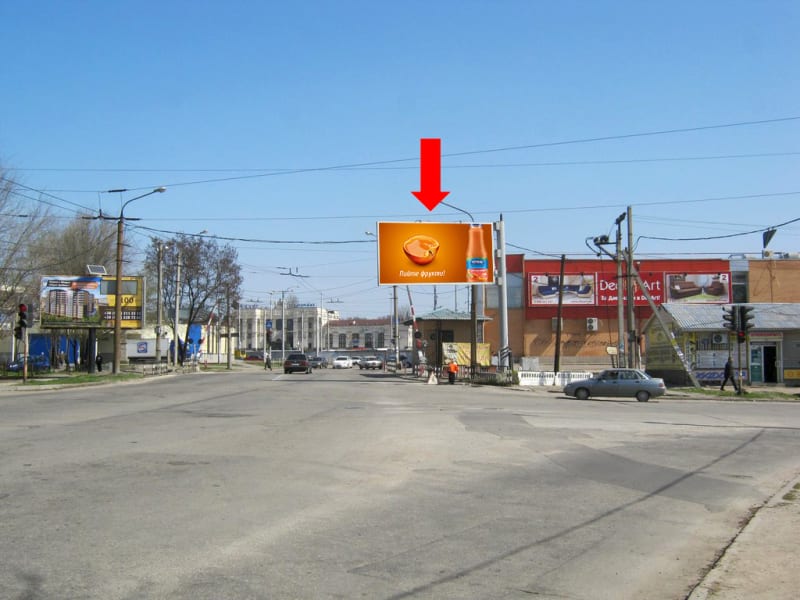 Біл борди Запоріжжя Привокзальна вул. (кол. Луначарського вул.) / Ласточкіна вул. (кол. Чапаєва вул.), біля супермаркету "Ельдорадо", в бік Соборного пр. (кол. Леніна пр.), з/д вокзалу Zpr1031-1 — Замовити | РА Тринога