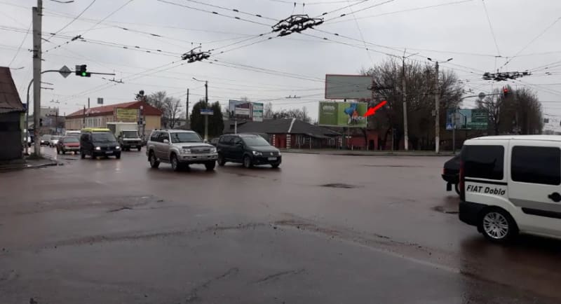Миру просп., 37 (Мікрорайон ДОС, АТБ, аптека "Первоцвіт-Фарм", ПРОДМАРКЕТ "Проспект", ОщадБанк), в напрямку центра міста