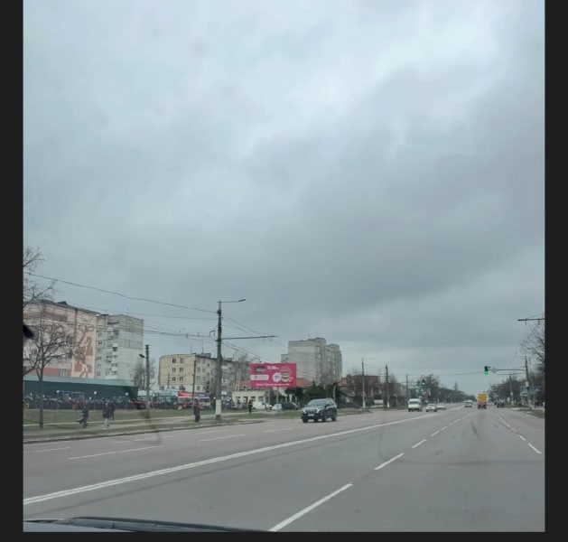 Миру просп., 37 (Мікрорайон ДОС, АТБ, аптека "Первоцвіт-Фарм", ПРОДМАРКЕТ "Проспект", ОщадБанк), в напрямку центра міста