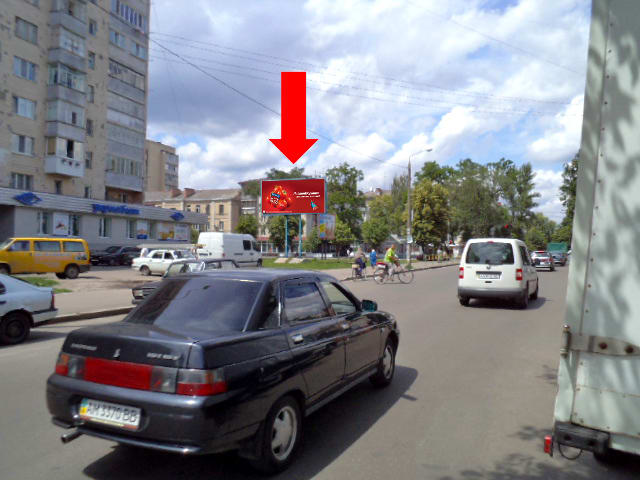 Зовнішня реклама в Житомирі: рекламний щит 3×6 м. Поруч орієнтир: Укргазбанку. Формат 3×6 м (сторона B). Ідеальне місце для розміщення реклами вашого бренду. Код: Zht1039.