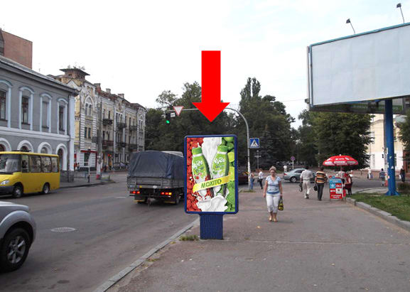 Зовнішня реклама в Житомирі: сітілайт 1.8×1.2 м. Розмір площини: 1.8×1.2 м, сторона A. Стратегічна локація для ефективної зовнішньої реклами. Код: Zht1264.
