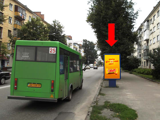 Оренда сітілайту 1.8×1.2 м в м. Житомир. Сторона A, розмір 1.8×1.2 м. Ідеальне місце для розміщення реклами вашого бренду. Код: Zht1218.