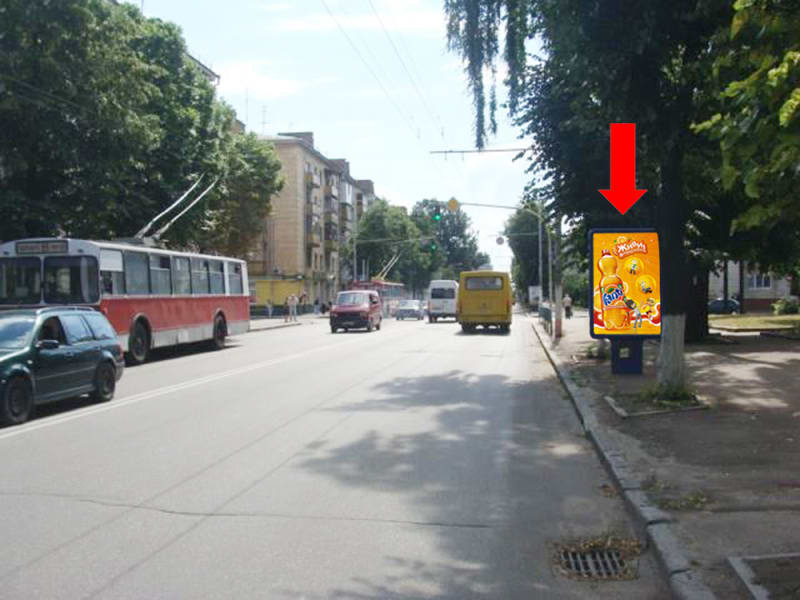 Зовнішня реклама в Житомирі: сітілайт 1.8×1.2 м. Формат 1.8×1.2 м (сторона A). Ідеальне місце для розміщення реклами вашого бренду. Код: Zht1214.