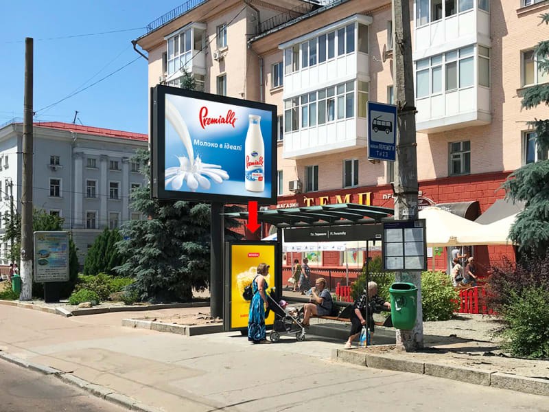 Біл борди Житомир Перемоги пл., 1/12, біля магазину "ТЕМП", зупинка "пл. Перемоги", центр Zht1550 — Замовити | РА Тринога